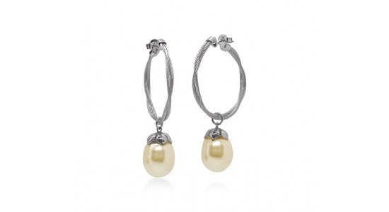 Gemstones characterized by warm hues perfectly capture the enchanting beauty of an autumn wedding, echoing the rich tones of the season. This stylish pair of Alor Classique earrings are an exquisite example, featuring luxurious South Sea pearls with a warm, golden luster. These pearls are contrasted beautifully by the sleek, silver-toned hoops, creating a striking balance that’s both elegant and refined. As they dangle from the ears, these earrings catch the light with every movement, adding a subtle yet captivating glow to your ensemble. Ideal for autumn, these earrings bring out the warmth and charm of the season in a truly sophisticated way.