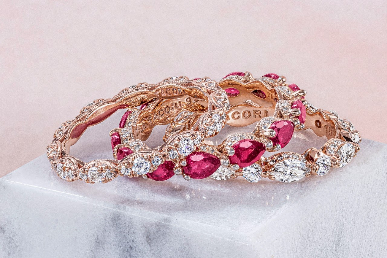 TACORI is a Southern California artisan jeweler world-renowned for their artfully handcrafted rings. Their collections feature well-loved timeless designs, as well as inspiring pieces with a modern flair. Designed with luxury in mind, the RoyalT collection is filled with grand, head-turning designs. Dazzling platinum or radiant 18k gold bands are adorned in your choice of brilliant diamonds, rubies, or sapphires. Another iconic collection is the Classic Crescent, where you will find breathtaking, intricately styled diamond wedding bands. Dantela wedding bands are characterized by a lace-like design that is complimented with channel set diamonds.